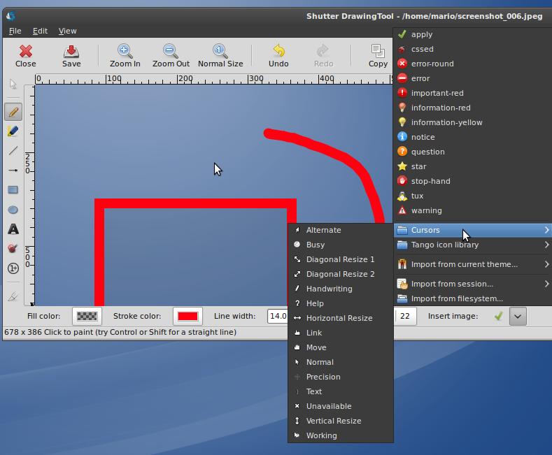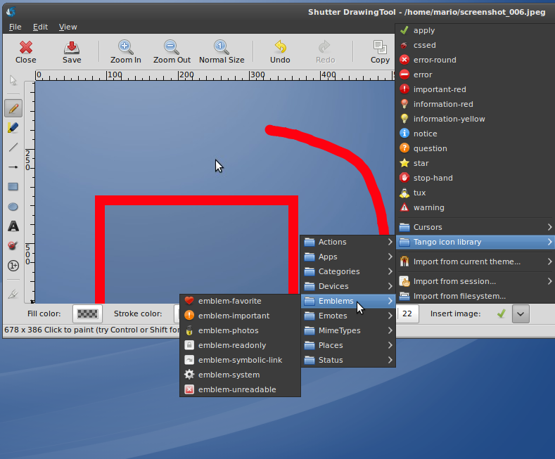 It is now possible to import all possible tango icons (separated by categories), cursors and even icons of your current icon theme.
