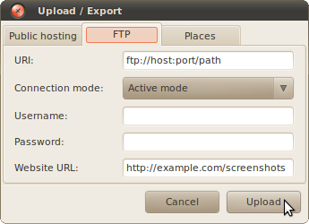 When uploading into a FTP server’s directory that is accessible via HTTP you can now configure the website’s URL. This URL will be copied to clipboard when uploading. You can now use the URL to view your screenshot in your favorite browser or paste it into a web-forum etc..